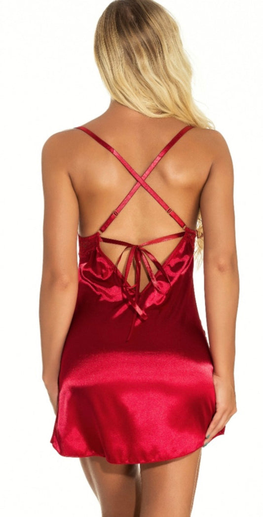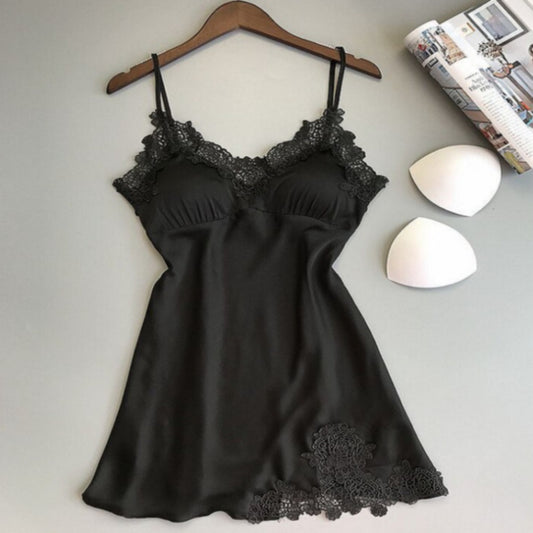 Halter-neck deep v solid lace nightdress (With G-strings)